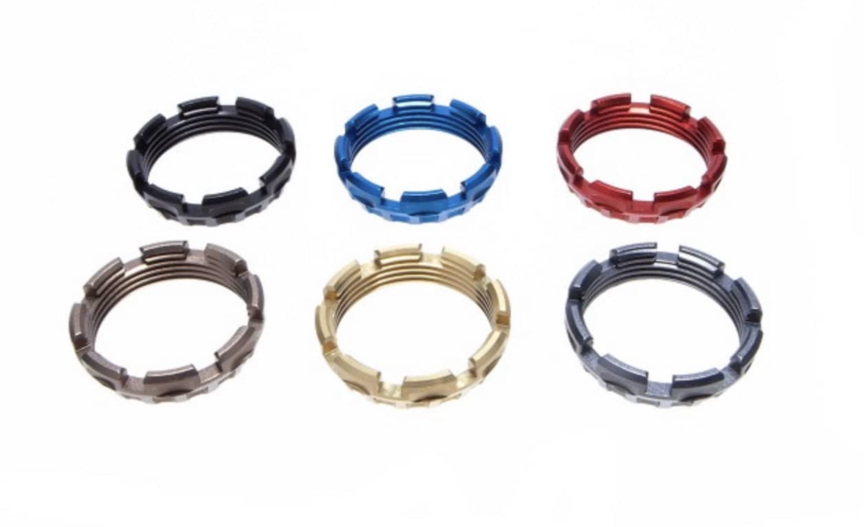 When designing our new Lightweight Enhanced (LE™) Castle Nut & End Plate System, we came up with two systems that virtually eliminates the risk of your castle nut ever backing out. With our two lockdown systems (K1 & K2), we’ve engineered a solution to install the castle nut onto the end plate that is not only robust, but also stands true to our brand of innovation and ingenuity. The K2 system utilizes a locking lever design that seats itself through a designed slot on the bottom of the end plate and into corresponding cutouts on the castle nut. This ultra precision fit allows the castle nut to seat itself into place without the need of staking the end plate. No set screws, no backing out and no failures. All of these features at only .53 oz / 15 grams!